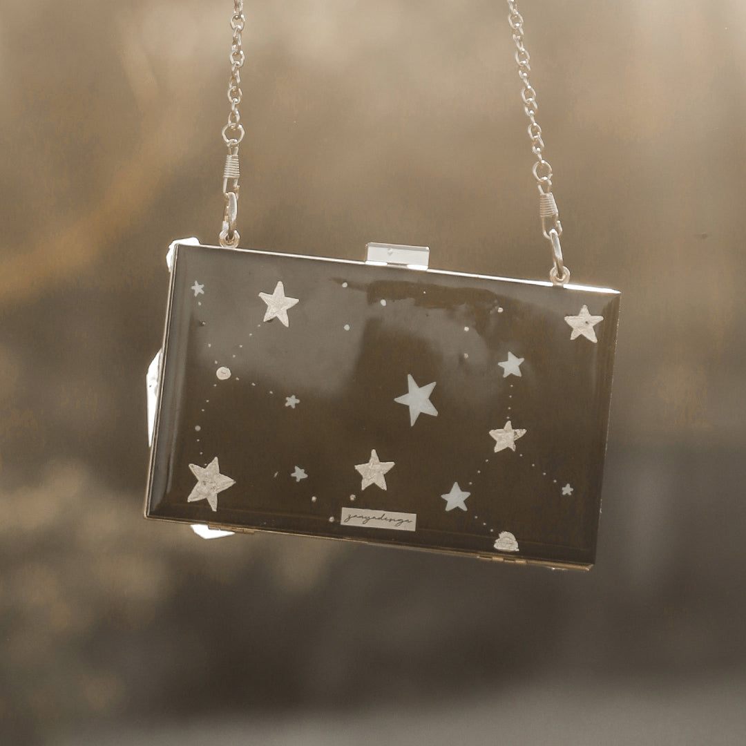 Diseño en fondo negro con estrellas en estilo de constelacion!